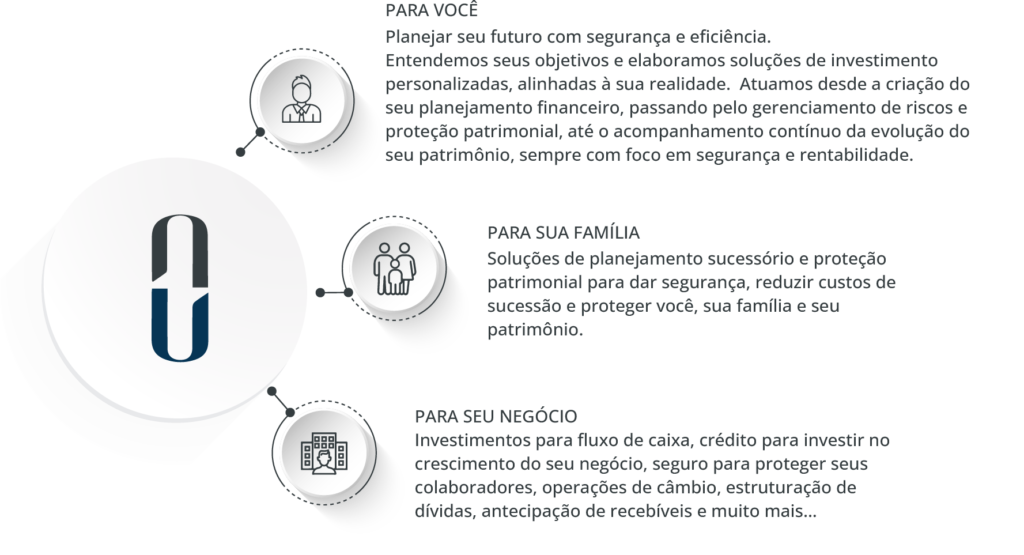 Somos seu braço direito no acompanhamento dos seus investimentos e nas decisões financeiras que afetam você, sua família e seu negócio.